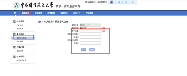 关于新版教务系统启用密码找回功能的通知各位老师、各位同学: 新版教务系统密码找回功能已正式启用,请各位老师和同学登录新版教务系统完善个人信息,以便可使用此功能找回密码。具体操作如下:教务部2017年2月28日