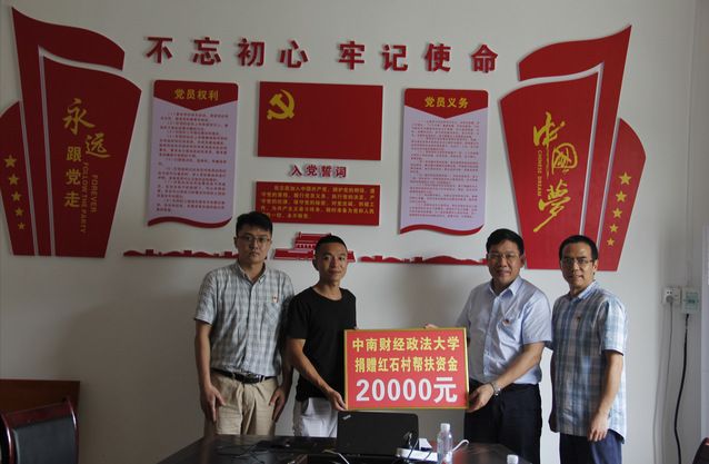 刘仁山副校长一行首先考察了学校支持建设的中南财经政法大学—红石村蔬菜基地,慰问了部分贫困户代表,并代表学校向红石村捐赠了2万元扶贫资金。