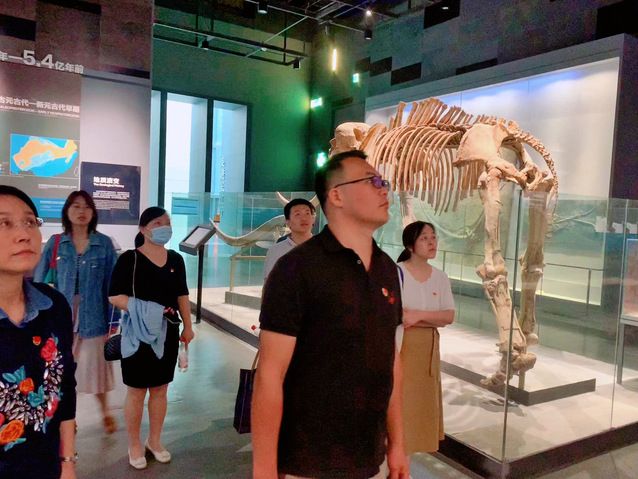 长江文明馆是湖北省爱国主义教育示范基地,是国家级文明博览馆,更是一座以人为本、立足长江、面向世界、面向未来的世界文化交流平台。在展馆讲解人员的带领下,支部成员先后参观了序厅、走进长江厅、感知文明厅和梦幻长江厅,通过看大量珍稀的动植物标本和矿石样品,感知生命与大自然的神奇。接着,大家继续参观自然博物馆,它以长江对话世界大河为布展理念,围绕大河、生物、人类的重点内容,唤起了进一步关注大河、热爱大河、保护大河、敬畏大河的意识。