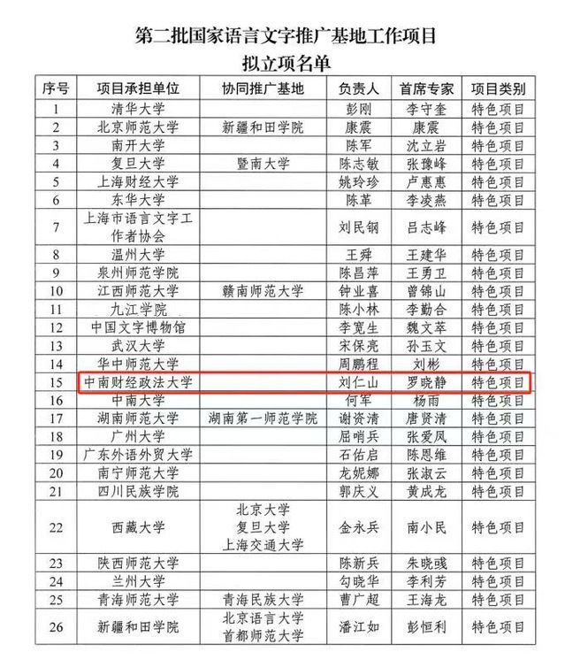 (学生通讯员 徐安琪 钟知方)近日,教育部语言文字应用管理司(国家语委办公室)向我校下发正式立项通知书。经专家评审和综合评议,由国家语言文字推广基地(中南财经政法大学)申报的“儿童文学阅读推广的垂直化和品牌化路径探索”项目成功获批为第二批国家语言文字推广基地特色工作项目,全国仅26个项目获批立项。