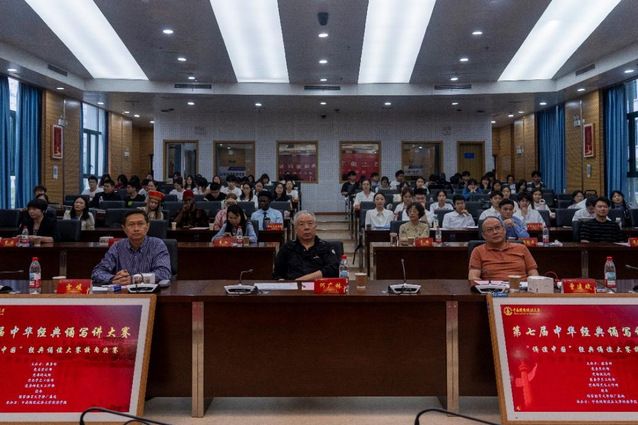 文脉承薪,典耀千秋,声诵华章,情系山河。5月8日下午,第七届中华经典诵写讲大赛之“诵读中国”经典诵读大赛校内决赛在文澴楼同声传译会议中心顺利举办。湖北广播电视台播音指导何广林、武汉广播电视台播音指导曾建斌、湖北省朗诵艺术家协会理事雷峻受邀担任本次大赛评委。校内相关单位参加活动。