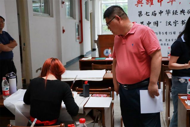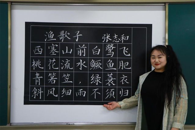 赛场上,选手们屏息凝神、挥毫泼墨,笔尖在纸稿上灵动游走。留学生组选手满怀热情、认真专注,展现了对中国传统文化的热爱;大学生组选手书写风格各异、朝气蓬勃;教师组参赛者运笔流畅、笔力遒劲,尤其是今年新增加的粉笔组赛道,充分展示了我校教师的风采和基本功力。
