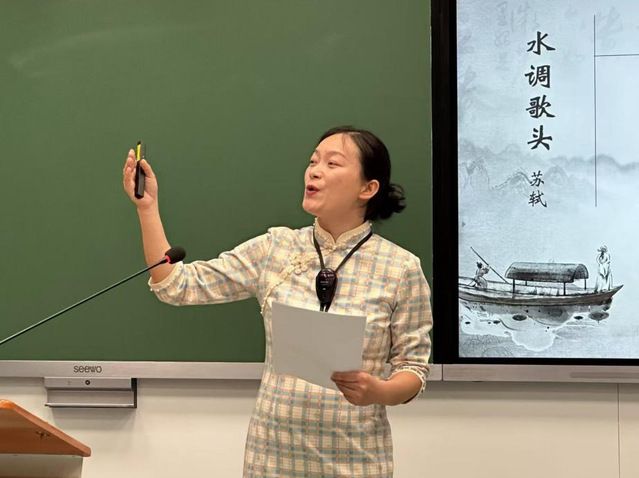 接下来,十一位来自各学院的参赛选手和国际教育学院邓珍老师分别进行了比赛展示。邓珍老师朗诵赏析了苏轼的《水调歌头·明月几时有》,语言优美,深入浅出,与当代社会现状相结合,引起观众们的广泛共鸣。