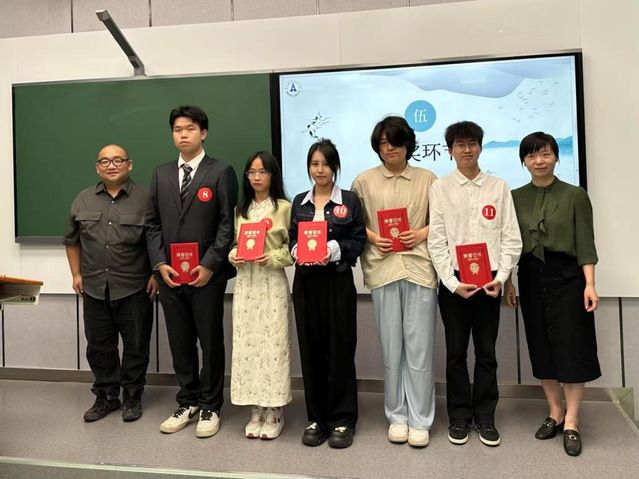 经过评审,来自经济学院汪颢哲带来的作品《正气歌》荣获一等奖,哲学院、国际教育学院和统计与数学学院荣获优秀组织奖。活动最后,评委嘉宾为获奖选手颁发证书并合影留念。