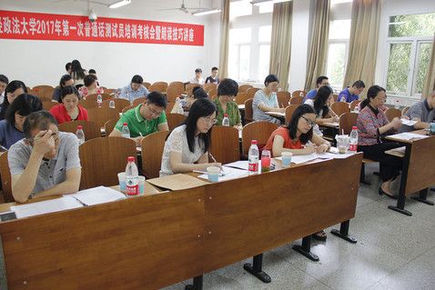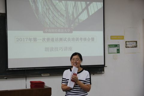 新闻网讯(通讯员 柳凌之)6月22日上午,由教务部语委办主办的2017年“第一次普通话测试员培训考核会暨朗读技巧讲座”在文澜楼205教室举行。本次活动邀请了我校两位国家级普通话测试员蔡圣勤老师、胡先锋老师为主讲人,教务部副部长范丽萍以及全校普通话测试员共同参加了此次活动。