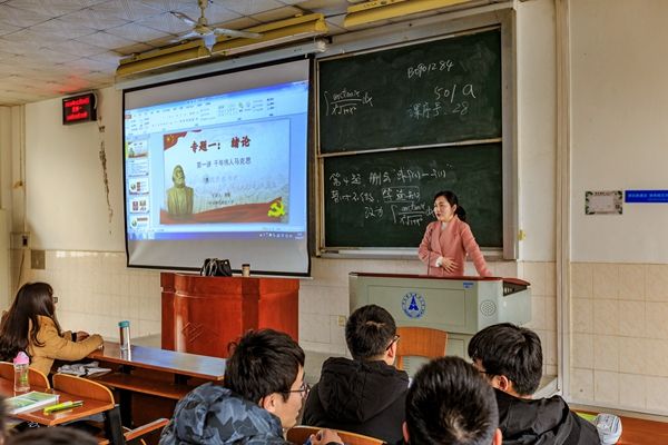 在文瀚楼501这个大教室,马克思主义学院的荣枢老师让学生们掏出手机扫描二维码,进入她的答题页面?!澳闳衔ǘぢ砜怂际歉鍪裁囱娜耍俊闭飧鑫侍獗阍旧掀聊?,不一会儿,荣枢老师便陆续收到了学生们的答案,并且这些答案还以数据统计的方式显现出来——学生们的答案中,“伟大”出现了51次,“无产阶级”出现了27次,其它出现频率较高的词是“领袖”“革命”“资本论”“人民”。