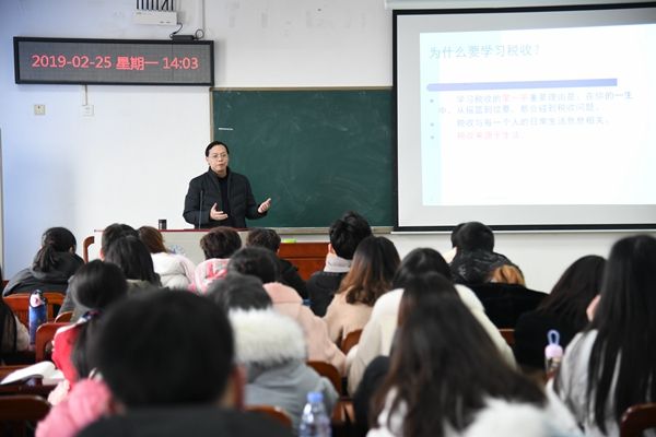 “学习税收的第一条重要理由是:在你的一生中,从摇篮到坟墓,都会碰到税收问题?!笨У谝惶?,下午2点,财政税务学院薛钢老师的《中国税制》在南湖校区文泰楼404开讲。虽然是开学第一天,但薛钢老师从寒假便开始备课工作,恰逢国家新税制改革,这门课的内容需要更新的知识不少。